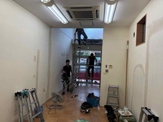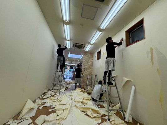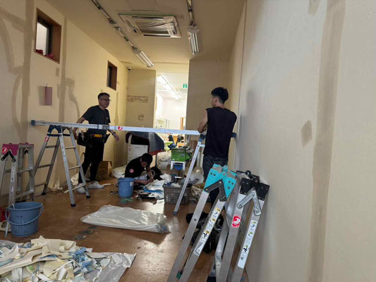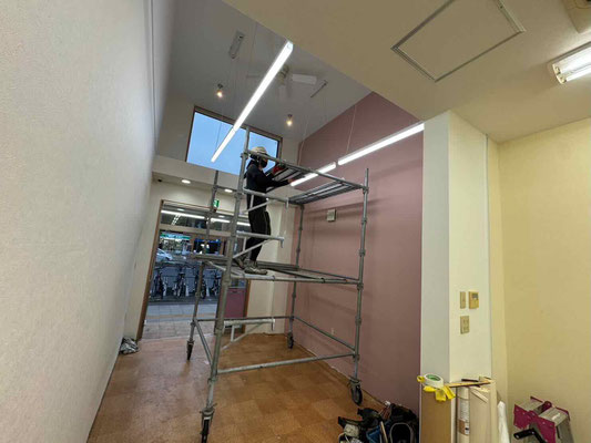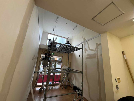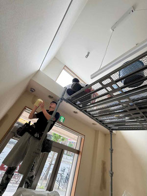 朝イチ足場屋さんに足場を組んでもらって作業開始💪